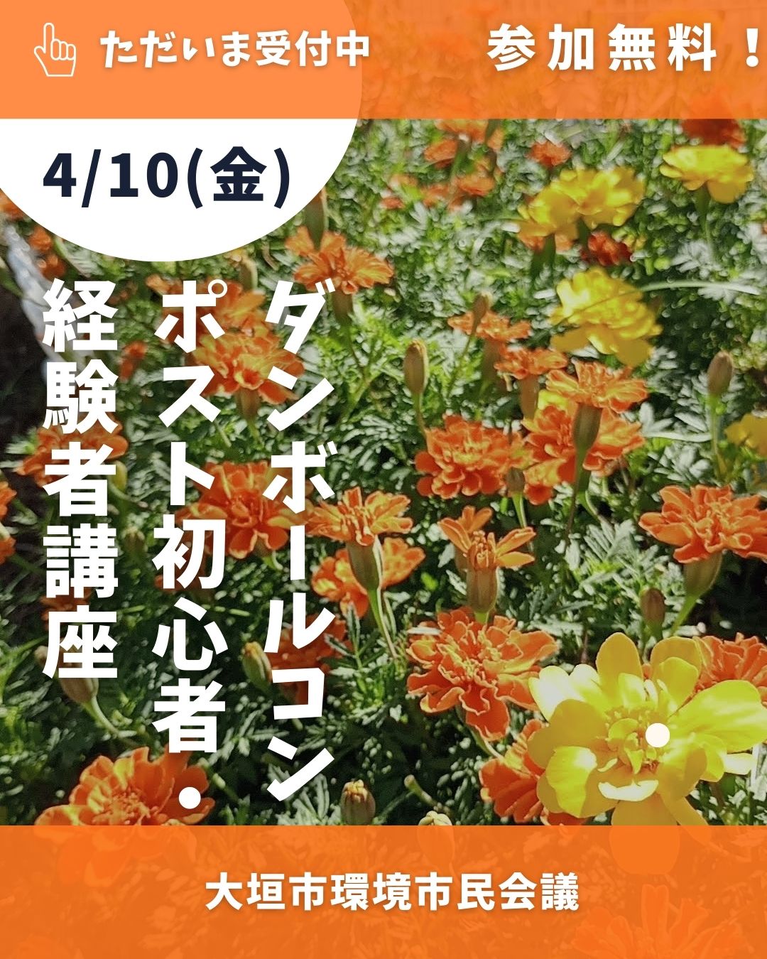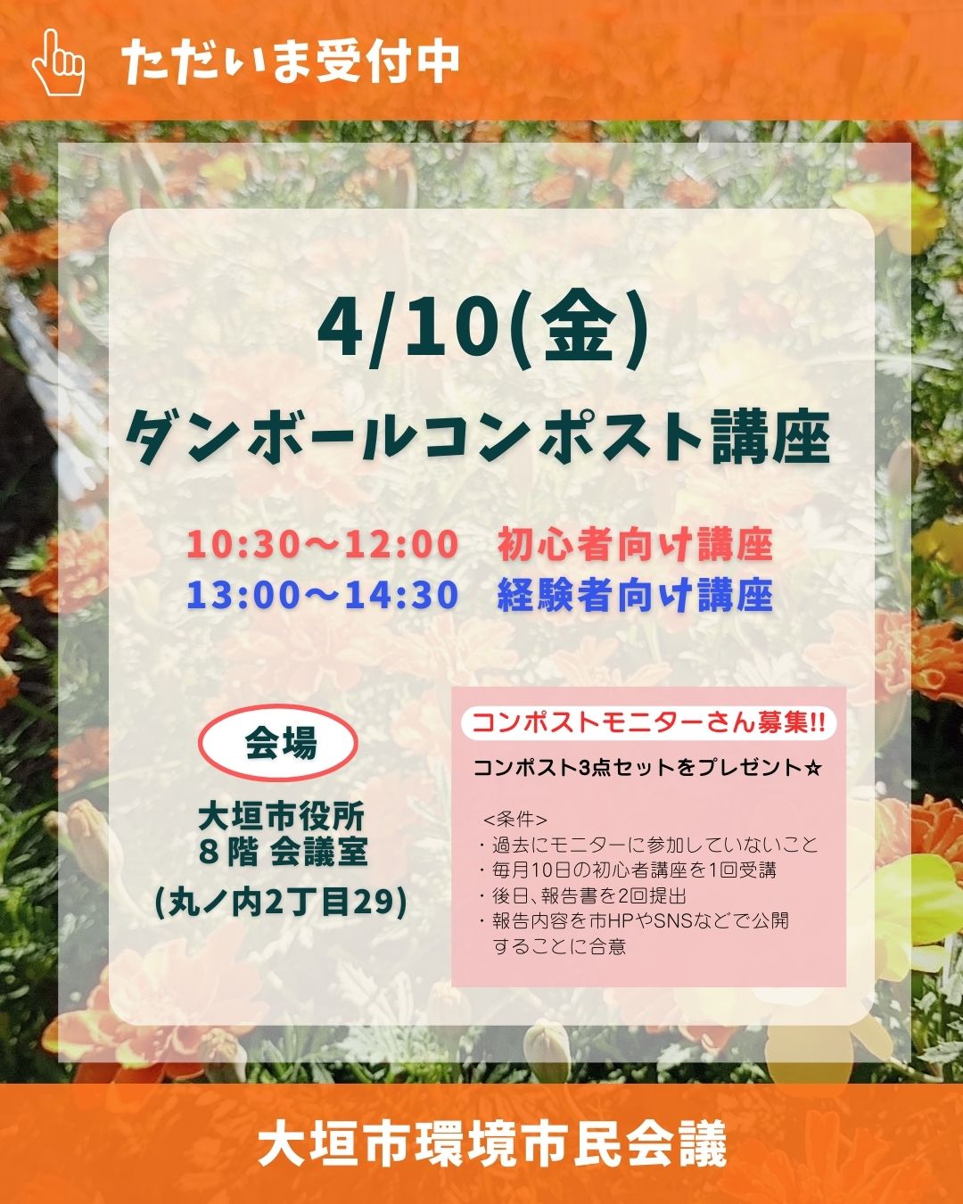 【捨てない暮らしを大垣の文化に!花も実もなるダンボールコンポスト、あなたもやってみませんか?】4月の無料定期講習会のお知らせです。