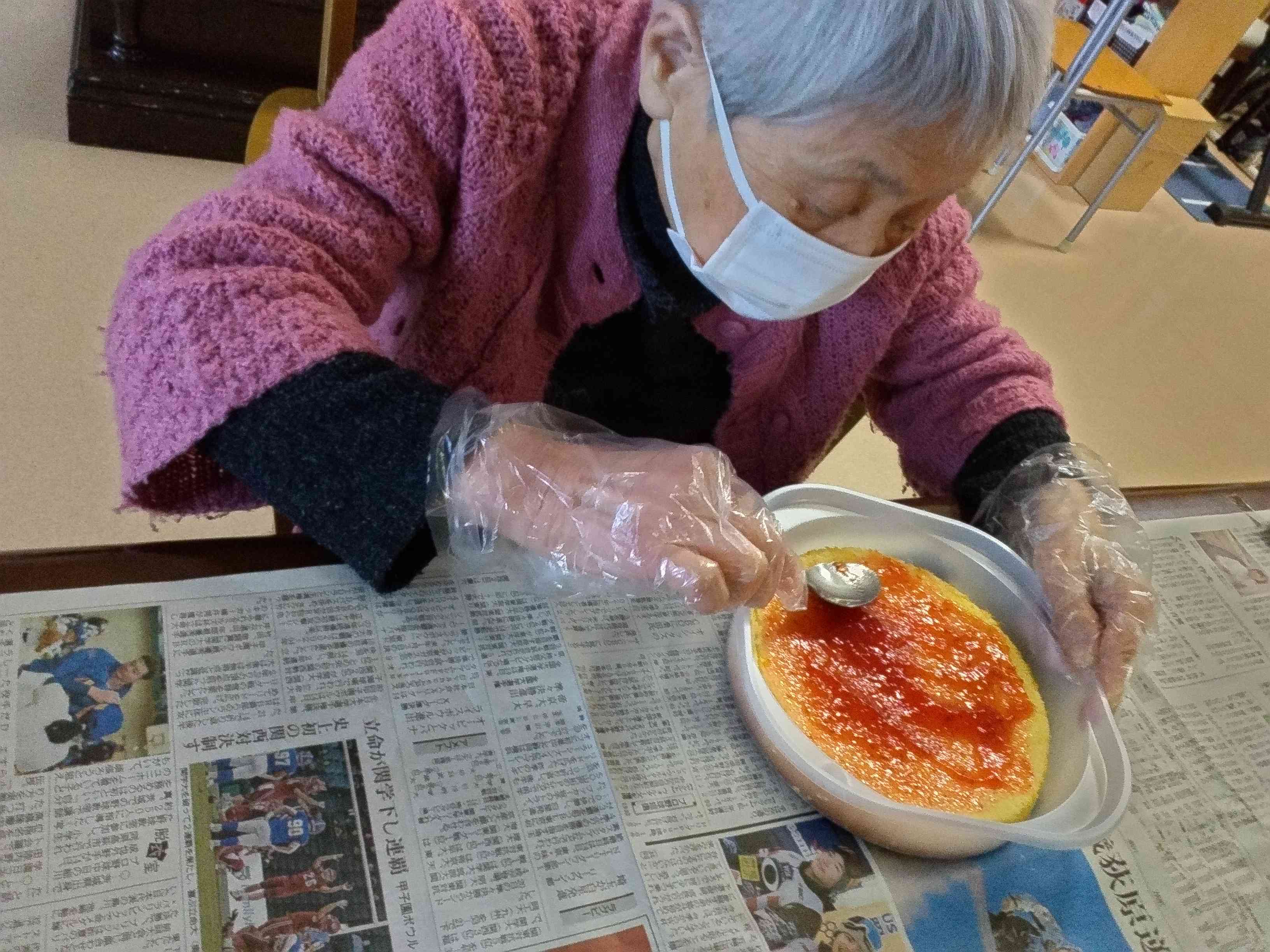 先日、クリスマス会を行いました。 残念ながら、サンタさんからはプレゼントは届かなかったのですが、ケーキ作りを行いました。