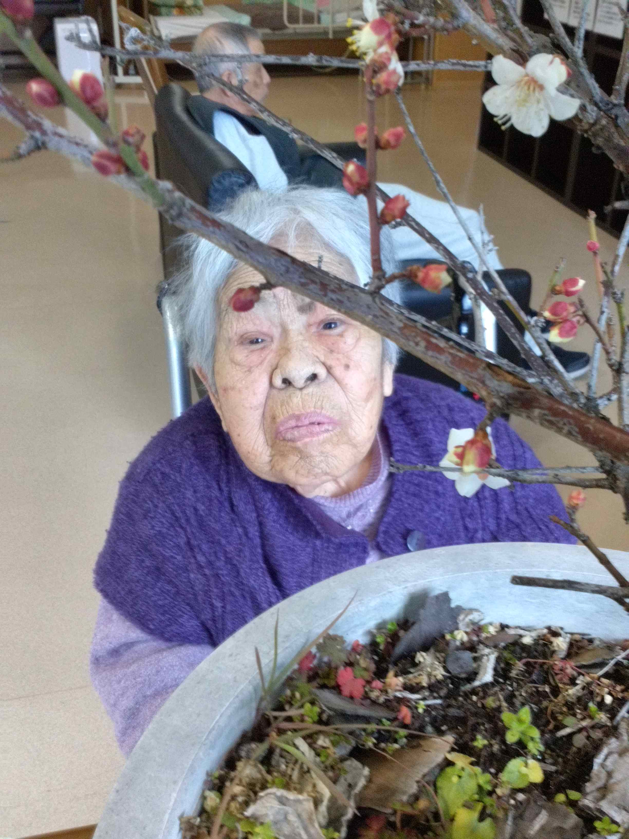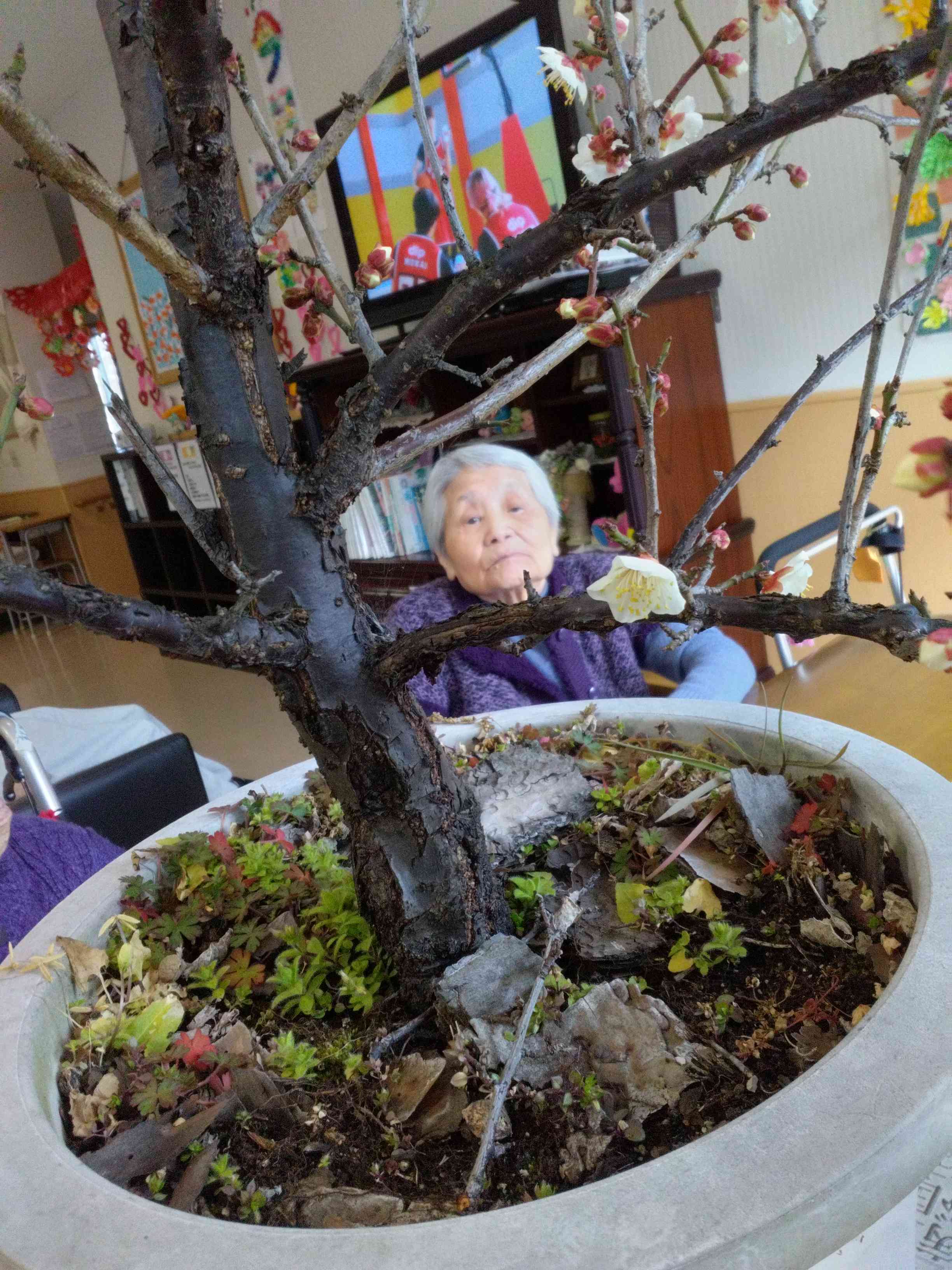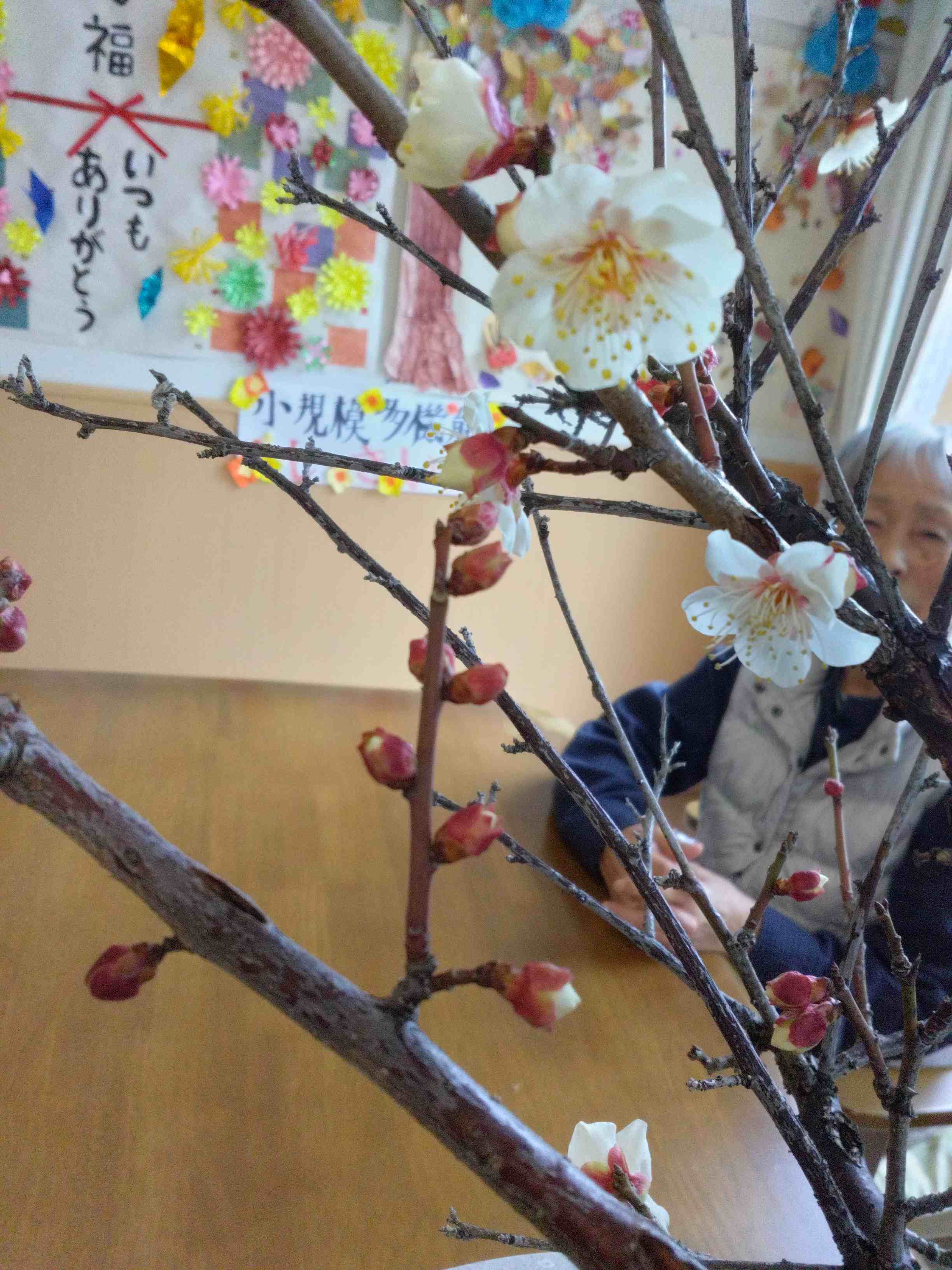 「きれいやね」「もう春やね」とお話をしながら、ゆっくりお花見気分を楽しみました。