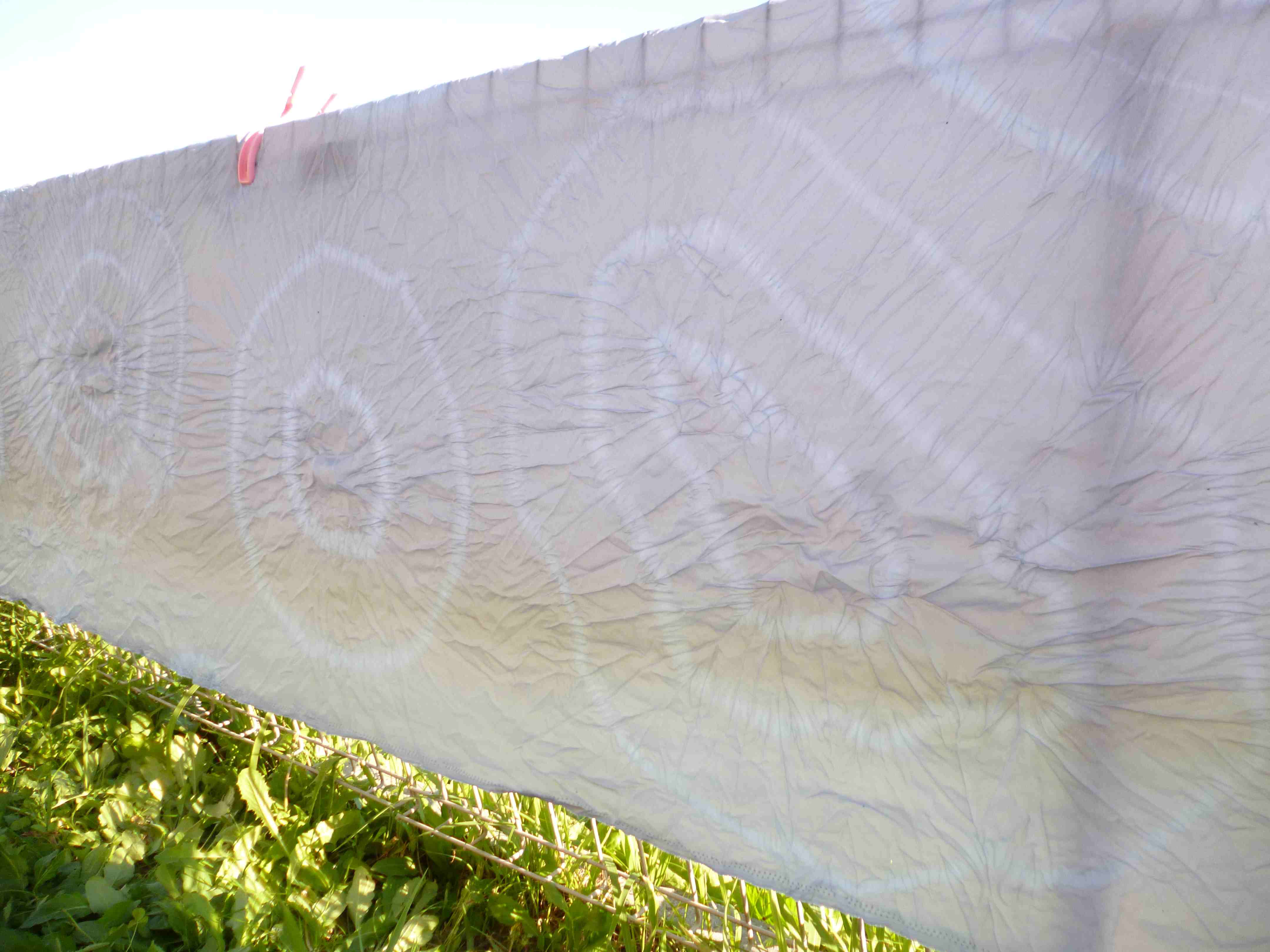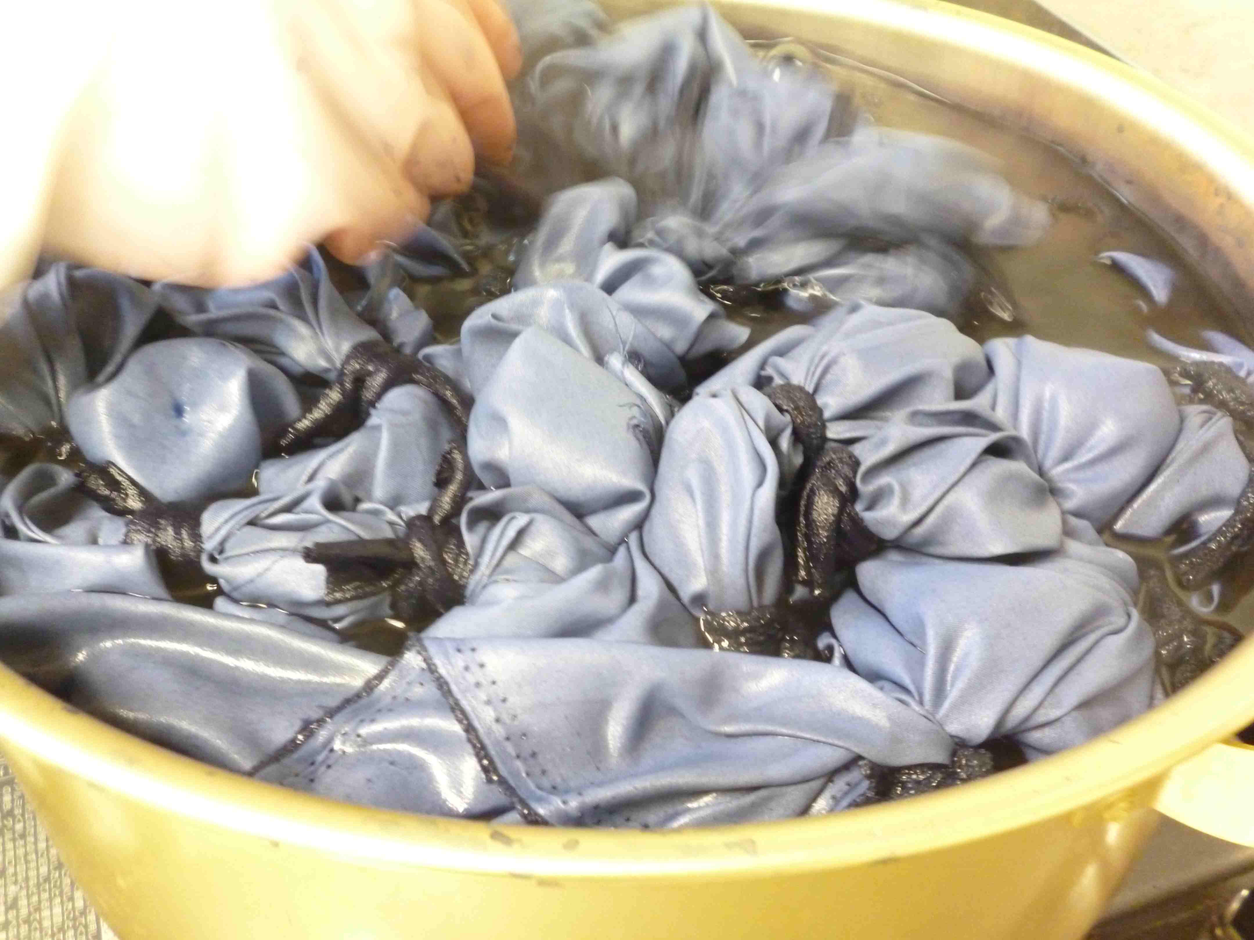 去年、ゴムで絞って柄が小さかったから今年は大きく絞って柄を大きくしよう。