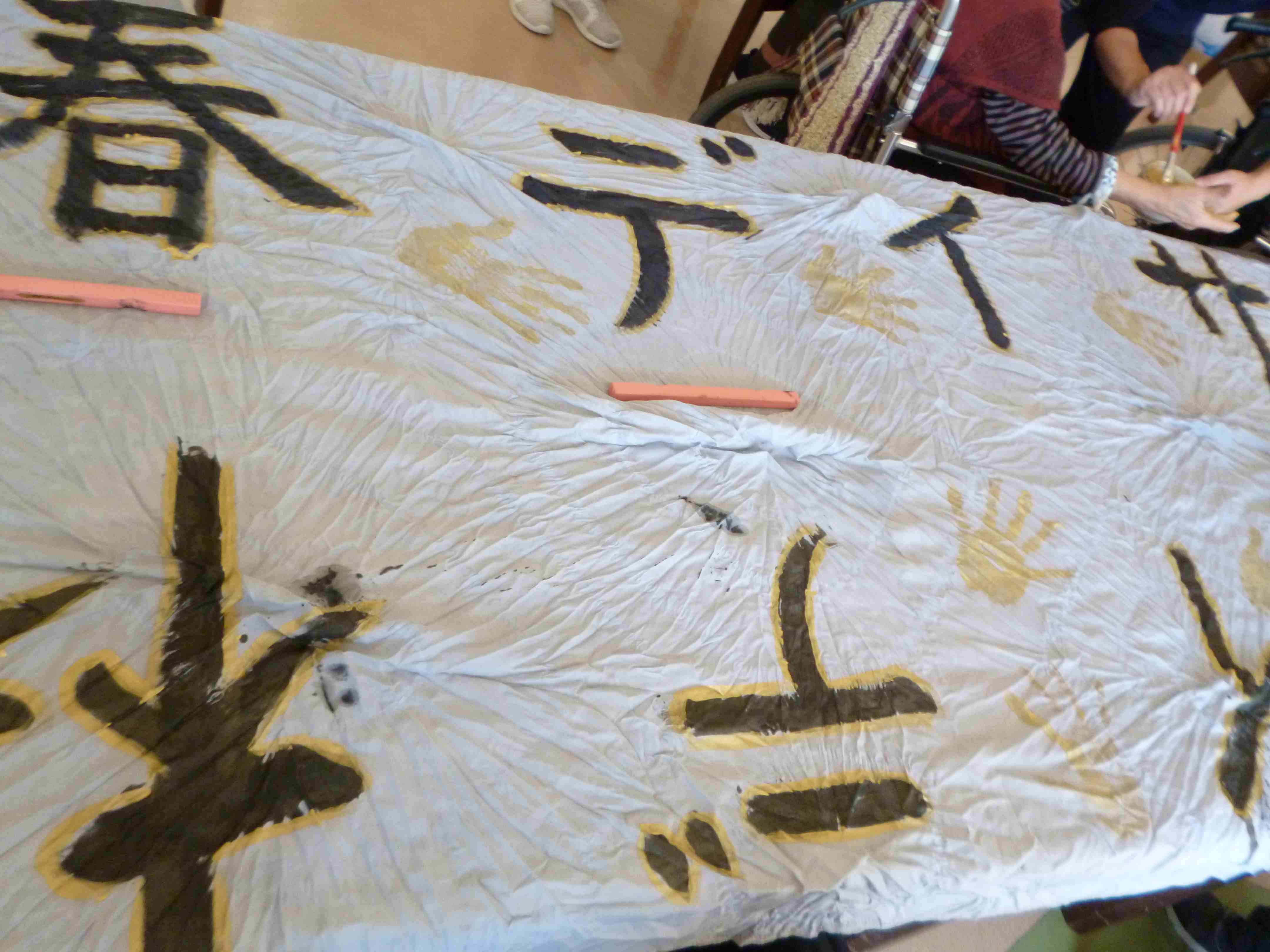 と、皆で考え今年は紺色に染めて金の文字を。と張り切って始めました。