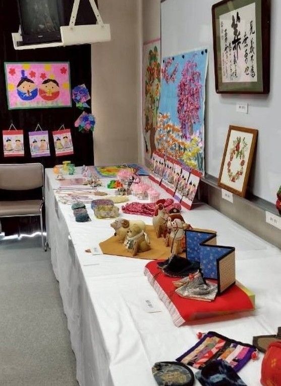 色とりどりの作品が並ぶ中、小規模多機能いきいきの作品も華やかに飾っていただきました。