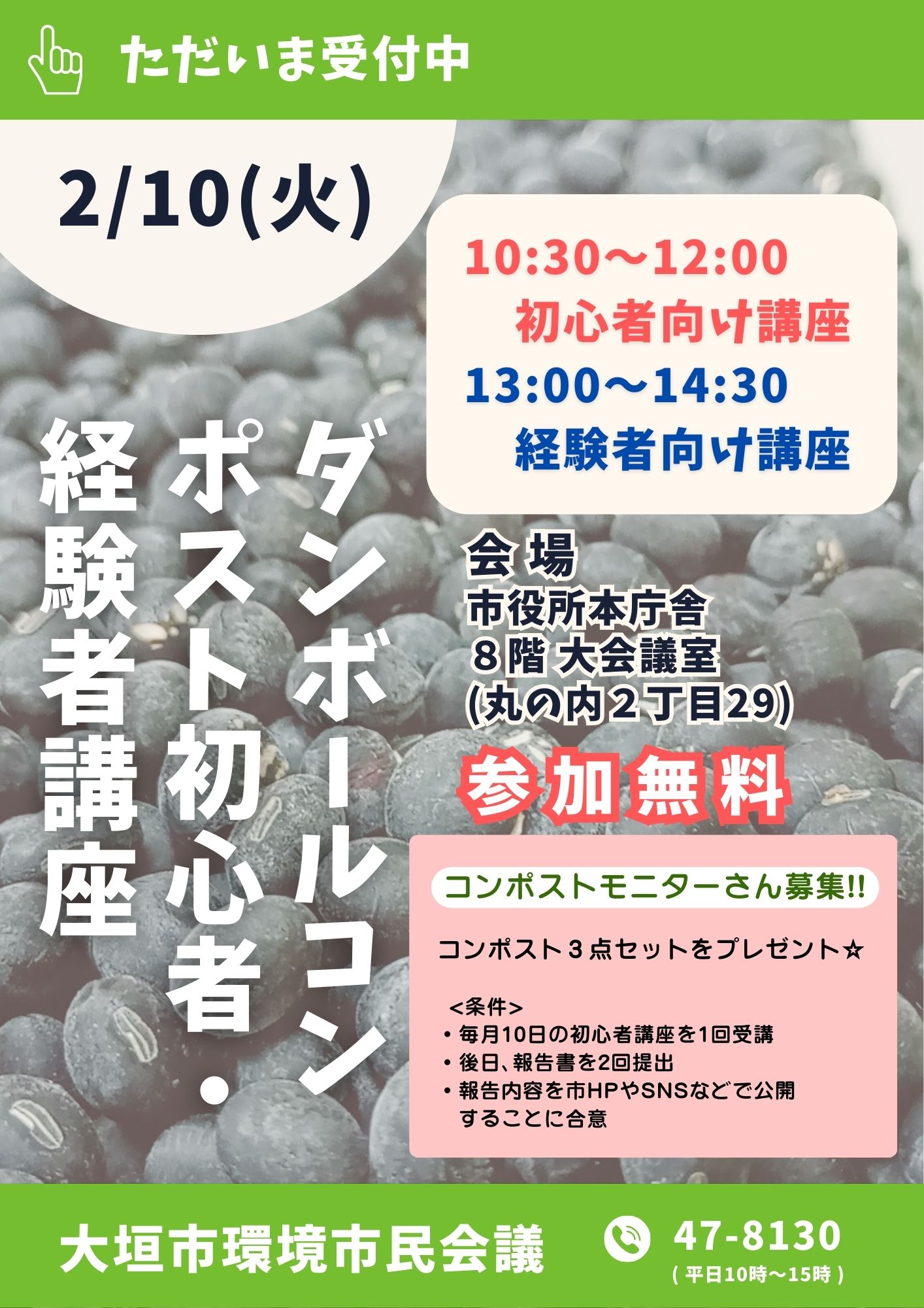 2/10(火)ダンボールコンポスト初心者・経験者講座のお知らせ