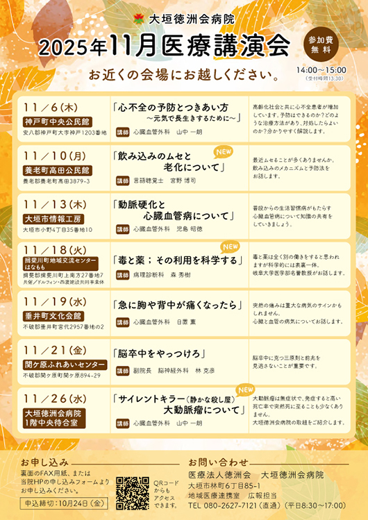 大垣徳洲会病院 11月医療講演会「サイレントキラー(静かな殺し屋)大動脈瘤について」 | |