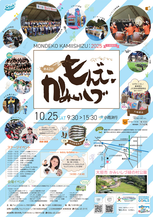 ≪ステージイベント≫ ・みかんものまねショー ・太鼓演奏 ・上石津学園児童生徒による合唱 ・のど自慢大会 ・大垣ラムネ早飲み大会 ・大抽選会 など ≪会場イベント≫ ・親子バイクチャレンジ ・ドローンサッカー体験 ・ダンボール迷路 ・薪割り体験 ・緑の村工作教室 ・もんでこ楽市楽座(バザー) ・牧田鮎塩焼き販売 ・上石津特産品販売 ・学校跡地利用紹介 など モーターサイクルロードレーサー岡崎静夏さんがやってくる! BMXプロライダー高木聖雄さんによるBMXジャムセッション同時開催! ---------------------------------------------- ※詳しくは、ホームページでご確認ください。 https://www.city.ogaki.lg.jp/0000068368.html ---------------------------------------------- |