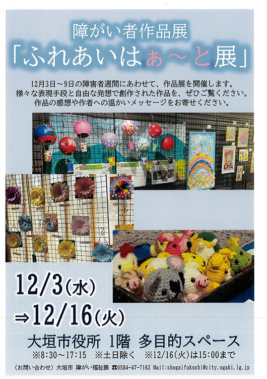 西美濃イベント情報 > 障がい者作品展「ふれあいはぁ〜と展」