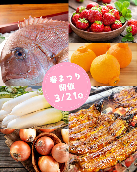 大垣市公設地方卸売市場にて春まつり開催いたします。 開催時間は午前10時から午後1時までです。 この季節にぴったりな桜鯛やまぐろ、うなぎの蒲焼のほか、新玉ねぎや春大根などの野菜、いちごやデコポンなどの果物が販売されます。 ぜひ皆様でご来場ください。 ---------------------------------------------- ※詳しくは、ホームページでご確認ください。 https://ogakiichiba.com/ ---------------------------------------------- |
