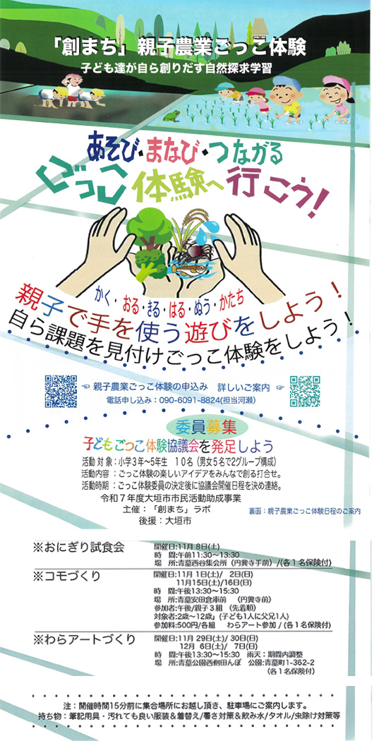 親子農業ごっこ体験 担当:川瀬 TEL 090-6091-8824 |