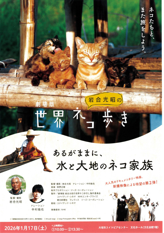 | 映画上映「劇場版 岩合光昭の世界ネコ歩き あるがままに、水と大地のネコ家族」 有料 |